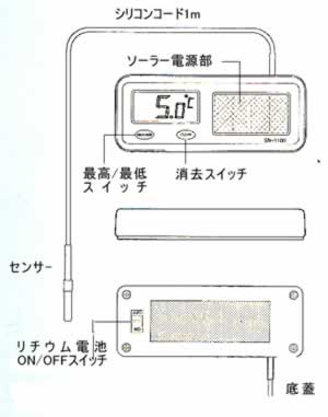 ![]() ソーラーで表示しない暗い場所ではΘドライバー等でONにして、ご使用下さい |